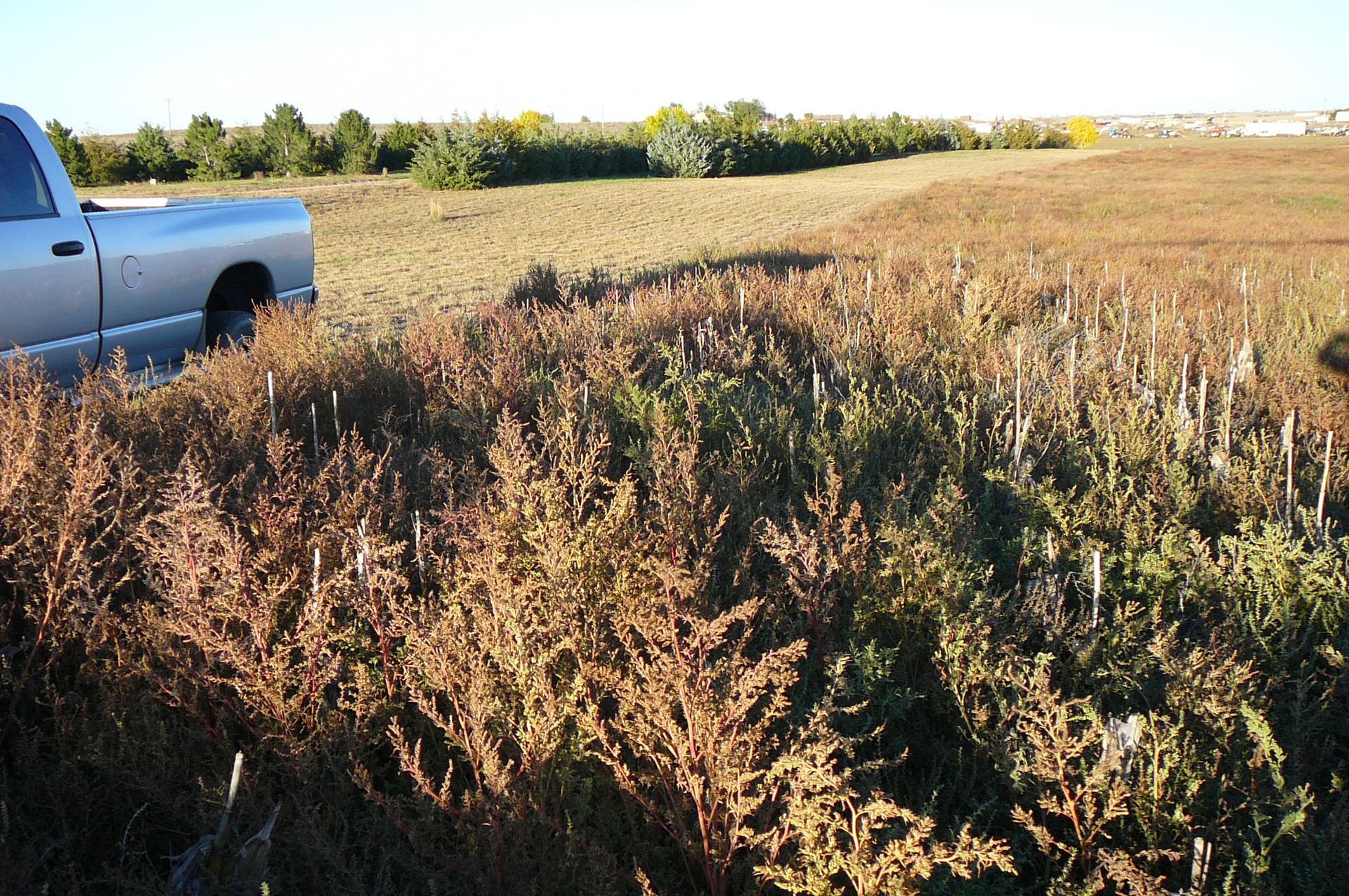144.54 ACRES IRRIGATED FARM 2 MILES SOUTH OF WIGGINS - 2 HOME SITES - Hwy 52 PAVED ACCESS SELLER WILL CONSIDER OFFERS ON portions.